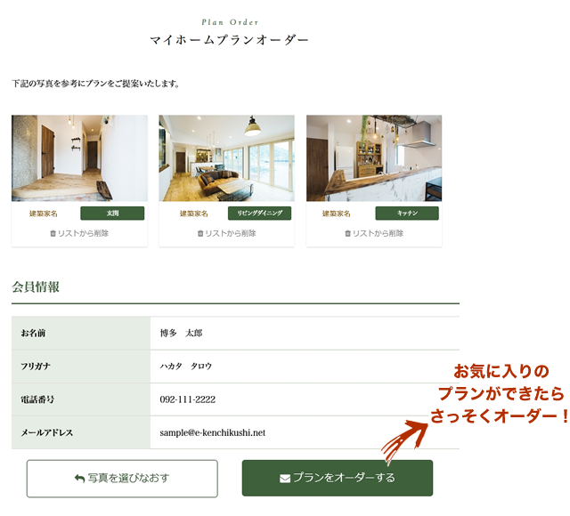 さっそく「プランをオーダーする」ボタンをクリックorタップで建築家に依頼!